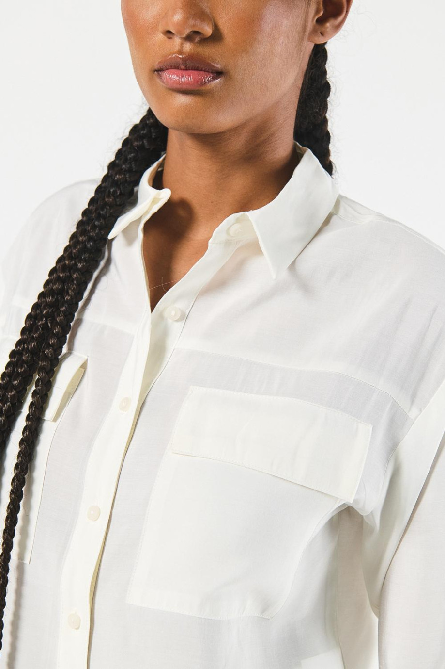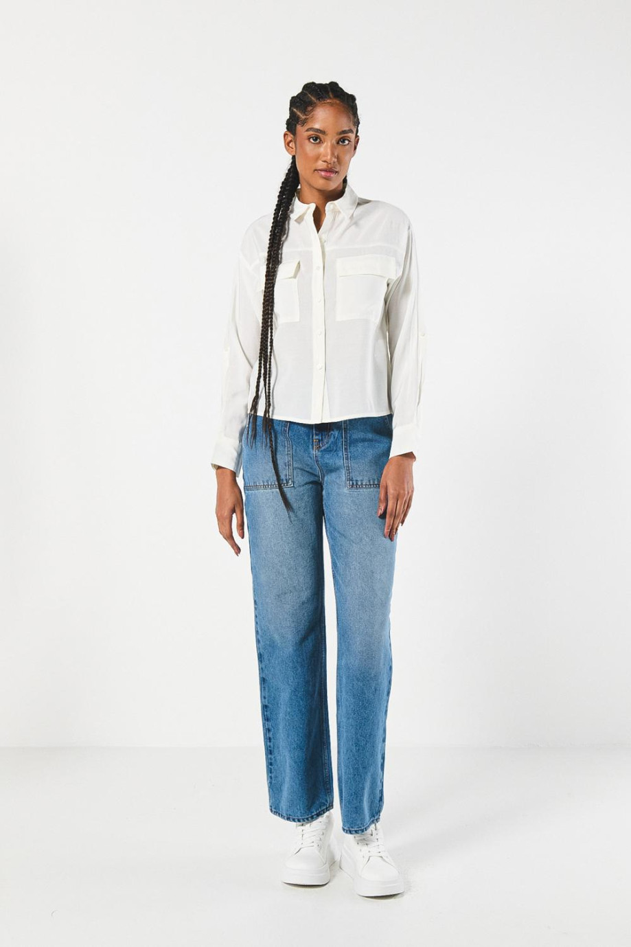 Blusa unicolor tipo crop para mujer cuenta con 2 bolsillos delanteros con tapa, cierre con botones en frente, manga larga, cuello camisero y un fit ligeramente ajustado al cuerpo. Luce juvenil en todo momento combinándola con tus jeans o faldas KOAJ favoritas, así le darás una nueva identidad a tu propio estilo.