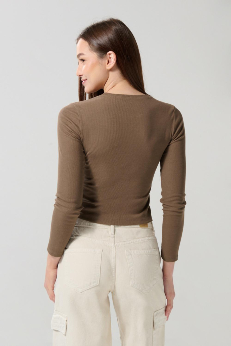 Camiseta unicolor para mujer cuenta con manga larga, cuello redondo, detalles con finas texturas acanaladas y una silueta ajustada al cuerpo. Esta es una prenda femenina y fácil de combinar que debes tener, con una falda en jean y tus tenis Koaj favoritos crearás un look en tendencia.