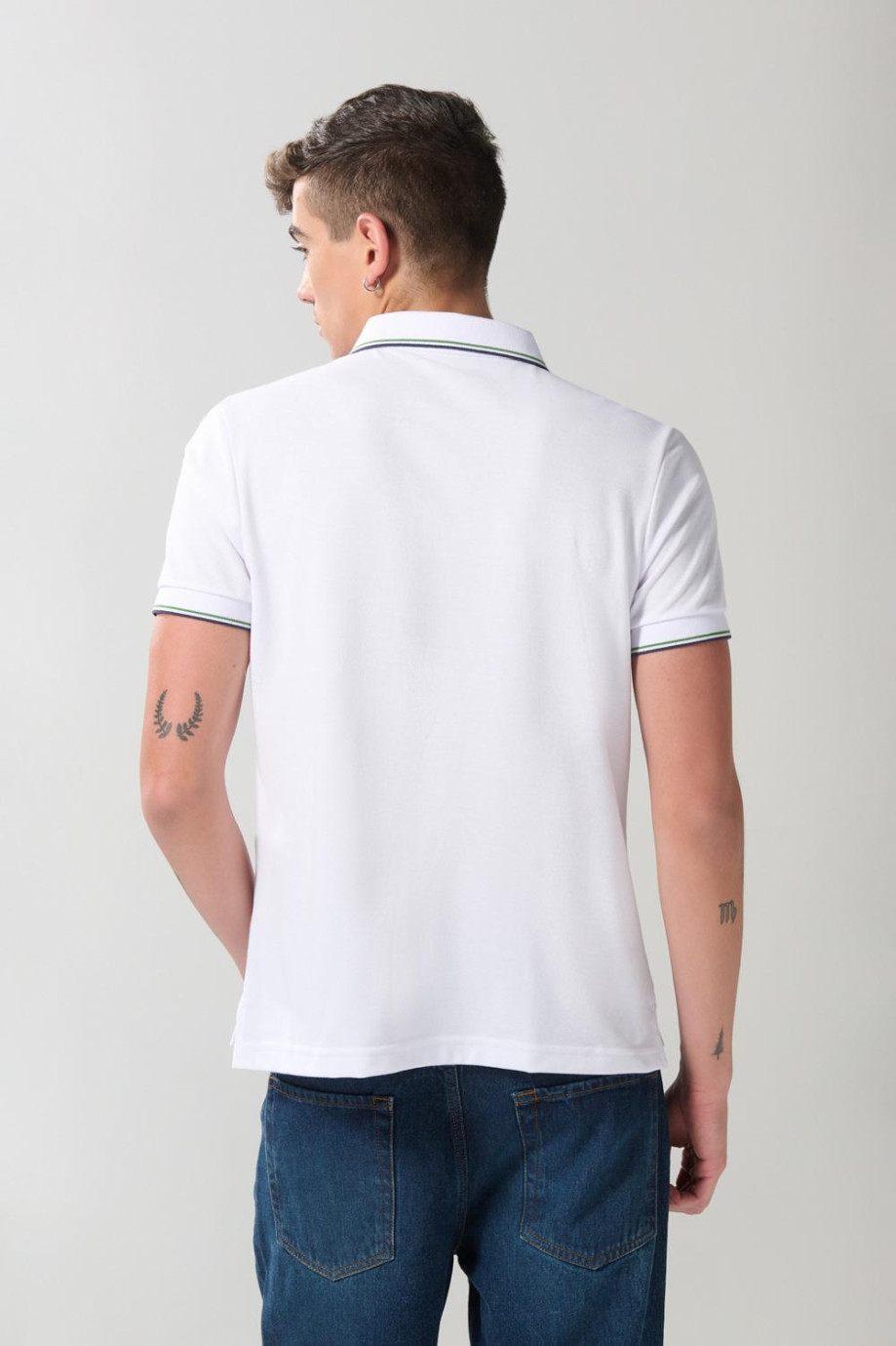 Camiseta polo para hombre en tono unicolor cuenta con puños y cuello tejidos con diseños de líneas, cierre con botones en pechera, manga corta, aberturas laterales y un fit ajustado al cuerpo. Esta es una prenda esencial que debes tener en tu armario, combínala con un pantalón en dril y lúcela en tus planes con amigos.