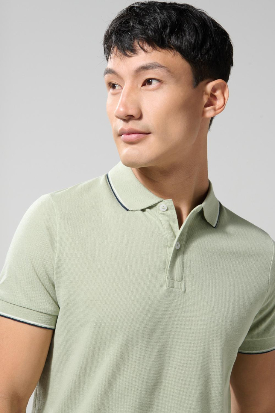 Camiseta polo para hombre en tono unicolor cuenta con cuello y puños tejidos, doble botón en la pechera, manga corta, aberturas laterales y una silueta ceñida al cuerpo. Esta prenda es el complemento perfecto para recorrer el mundo con estilo, con jeans o pantalones en dil lucirás a la moda.