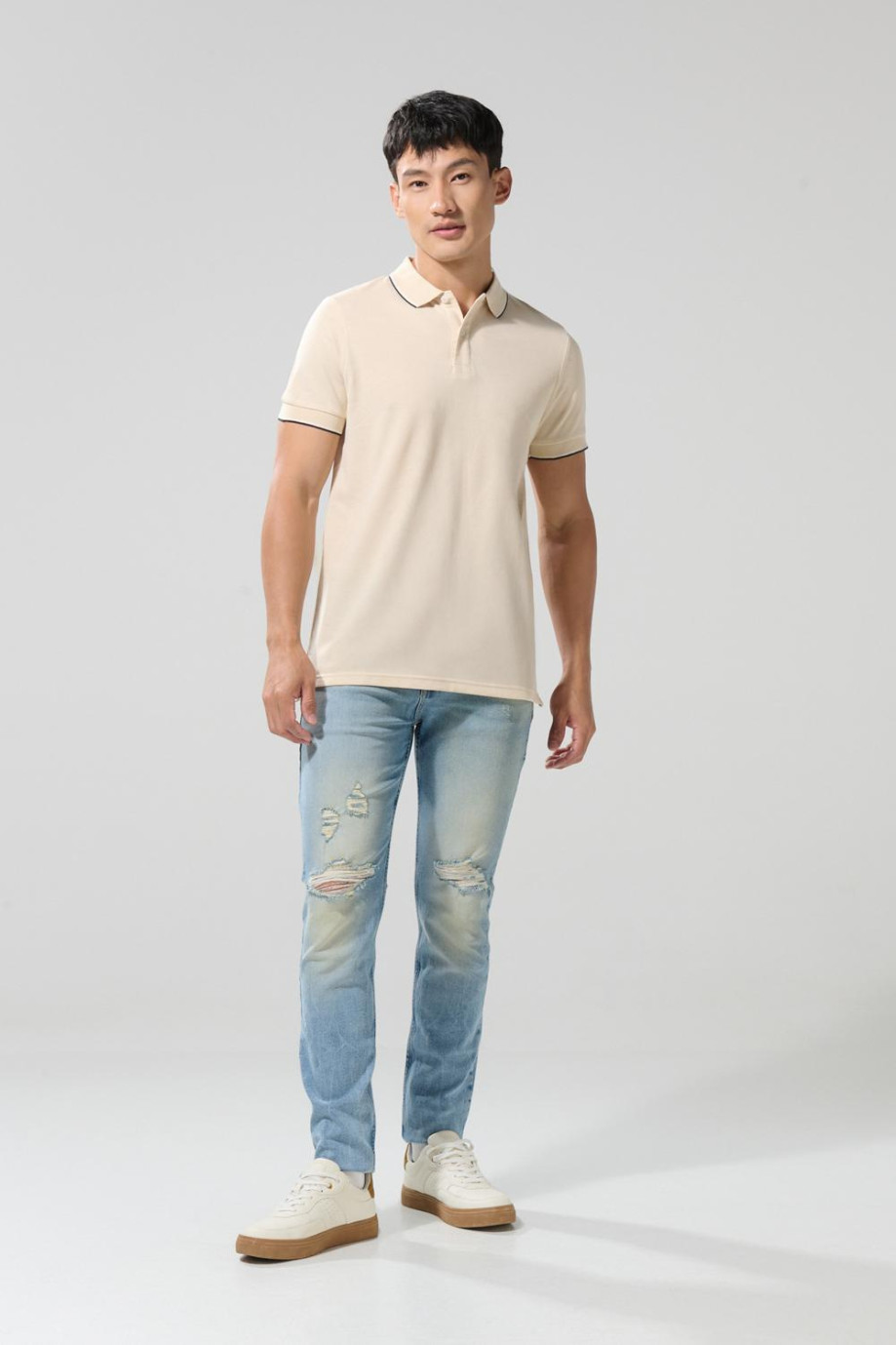 Camiseta polo para hombre en tono unicolor cuenta con cuello y puños tejidos, doble botón en la pechera, manga corta, aberturas laterales y una silueta ceñida al cuerpo. Esta prenda es el complemento perfecto para recorrer el mundo con estilo, con jeans o pantalones en dil lucirás a la moda.