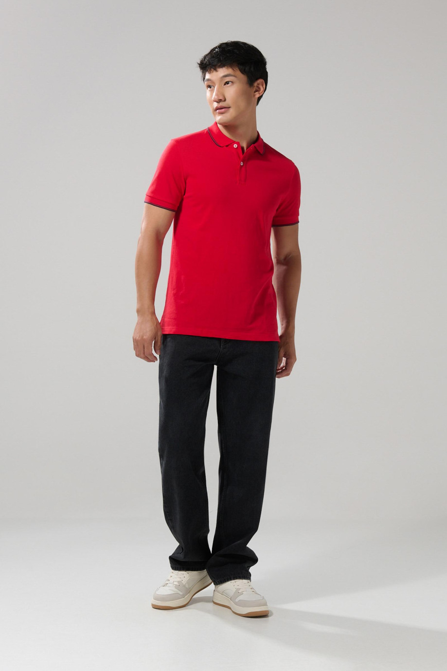 Camiseta polo unicolor con aberturas y manga corta