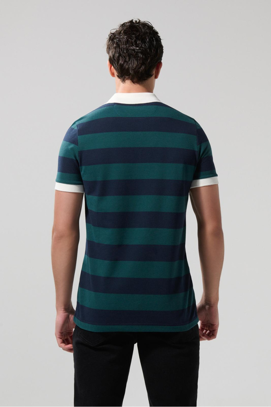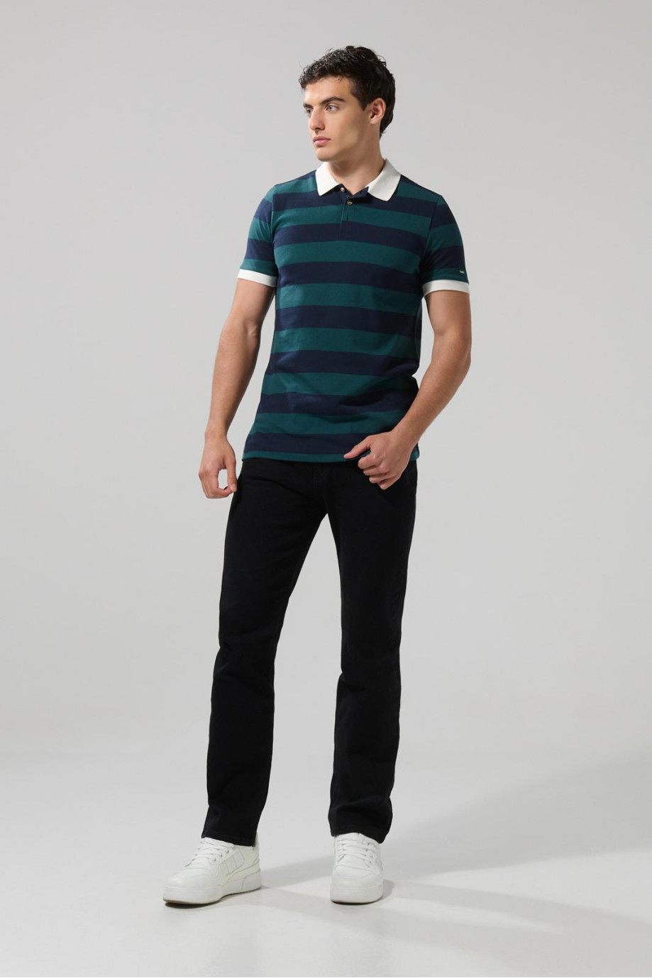 Camiseta polo unicolor para hombre cuenta con diseños de rayas continuas en contraste, puños y cuello tejidos, manga corta, botones en la pechera y una silueta ajustada al cuerpo. ¿Buscas una prenda que te saque de apuros? ¡Esta es la indicada! Combínala con jeans slim y crea atuendos perfectos para todos tus planes.