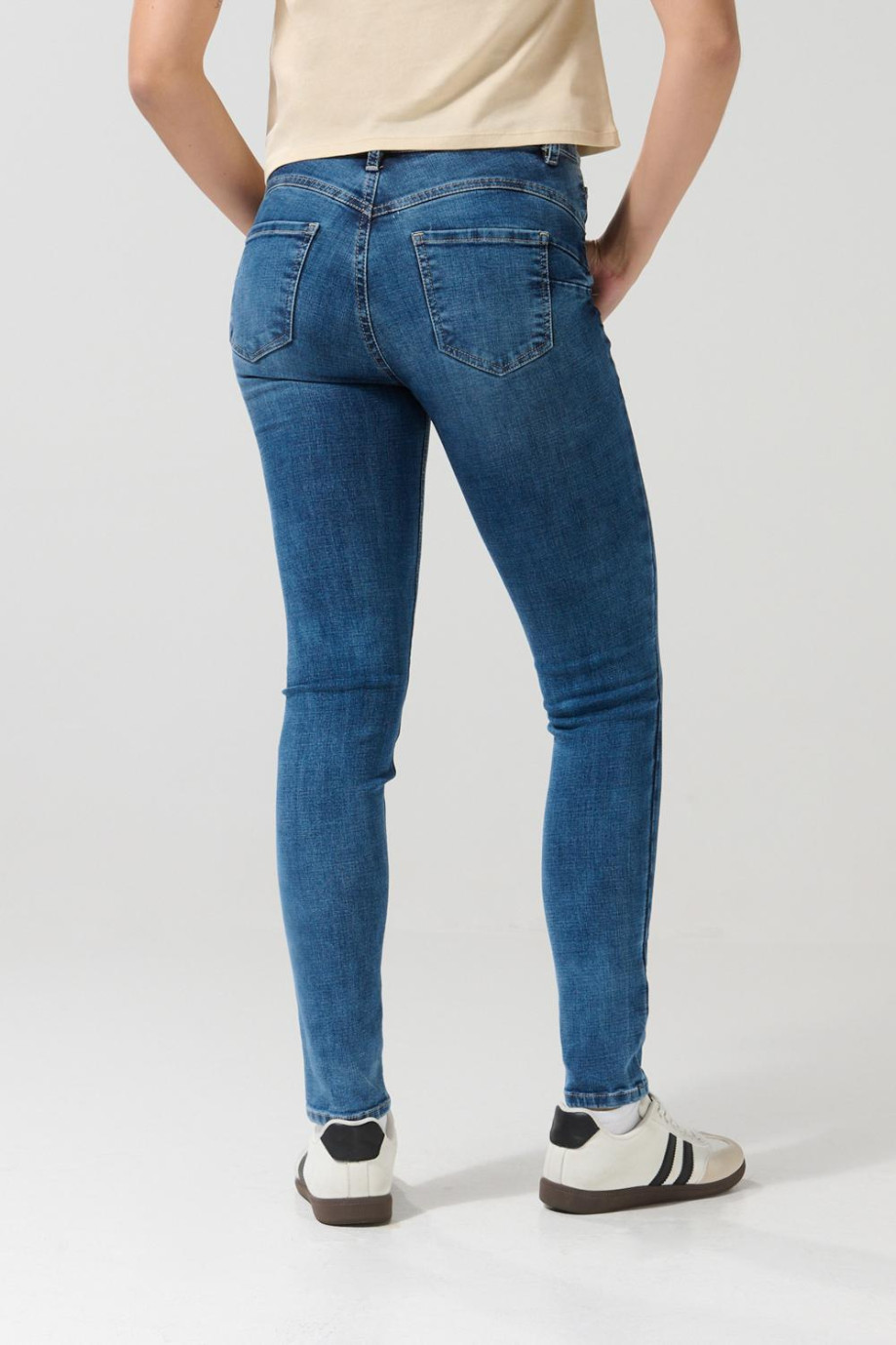 Jean azul medio push up con tiro alto, realce y bolsillos