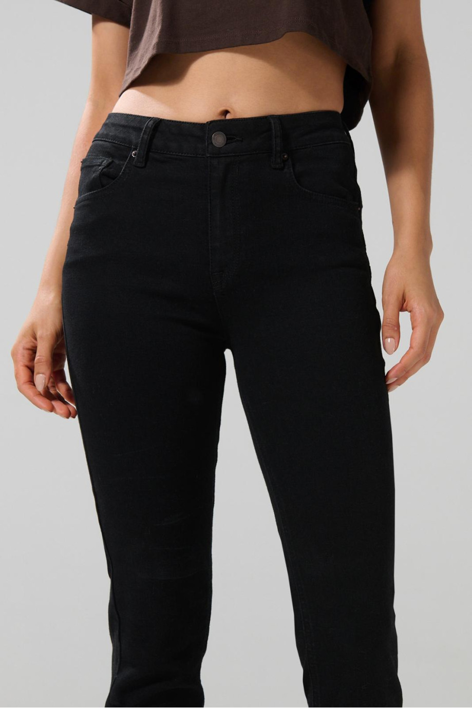 Jean push up para mujer en tono negro cuenta con tiro alto, pretina sencilla con botón metálico, 5 bolsillos, realce posterior con pinzas y un ajuste ceñido a la silueta del cuerpo. ¡Esta es la prenda perfecta para completar tus looks! Combínala con una camiseta blanca y róbate más de un suspiro.