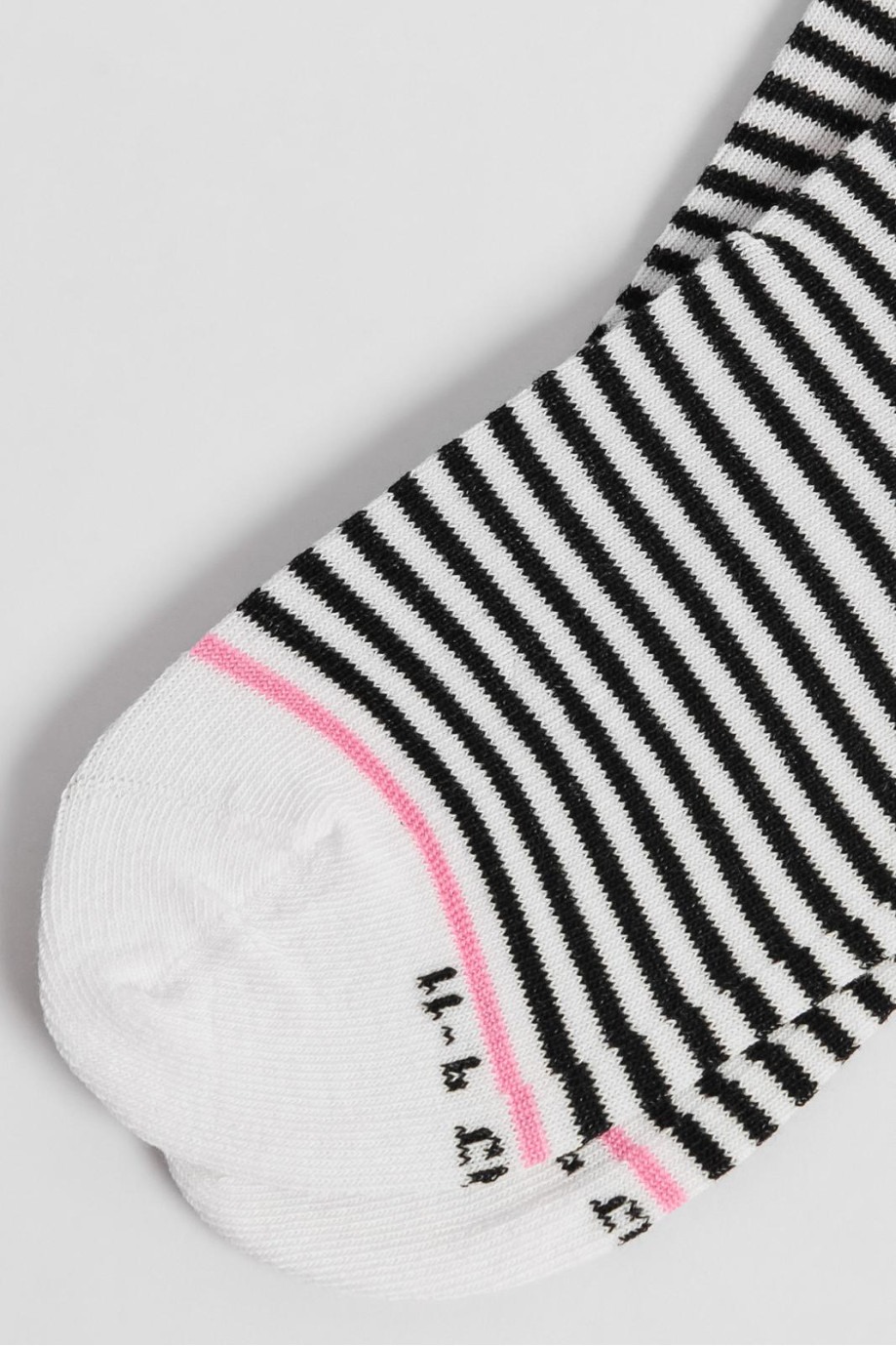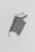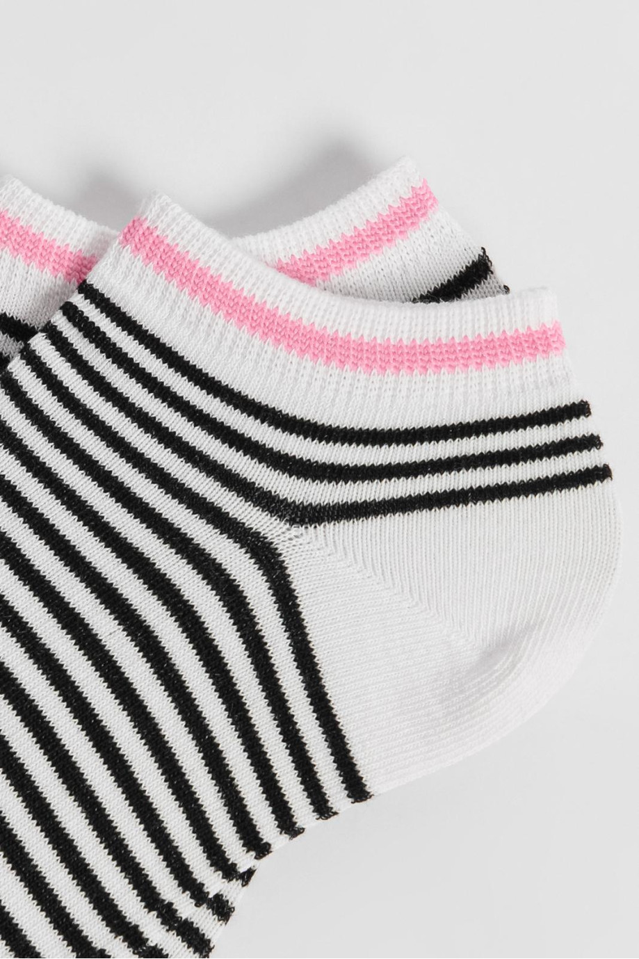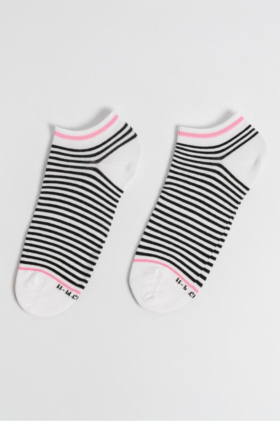 Medias tobilleras unicolores para mujer, confeccionadas en tela de algodón, cuentan con elástico en el borde superior y diseños de rayas continuas en contraste. Ideales para cualquier día de la semana, podrás lucirlas con un par de tenis de plataforma y caminar con mucho estilo. ¡Tus pies se sentirán cómodos!