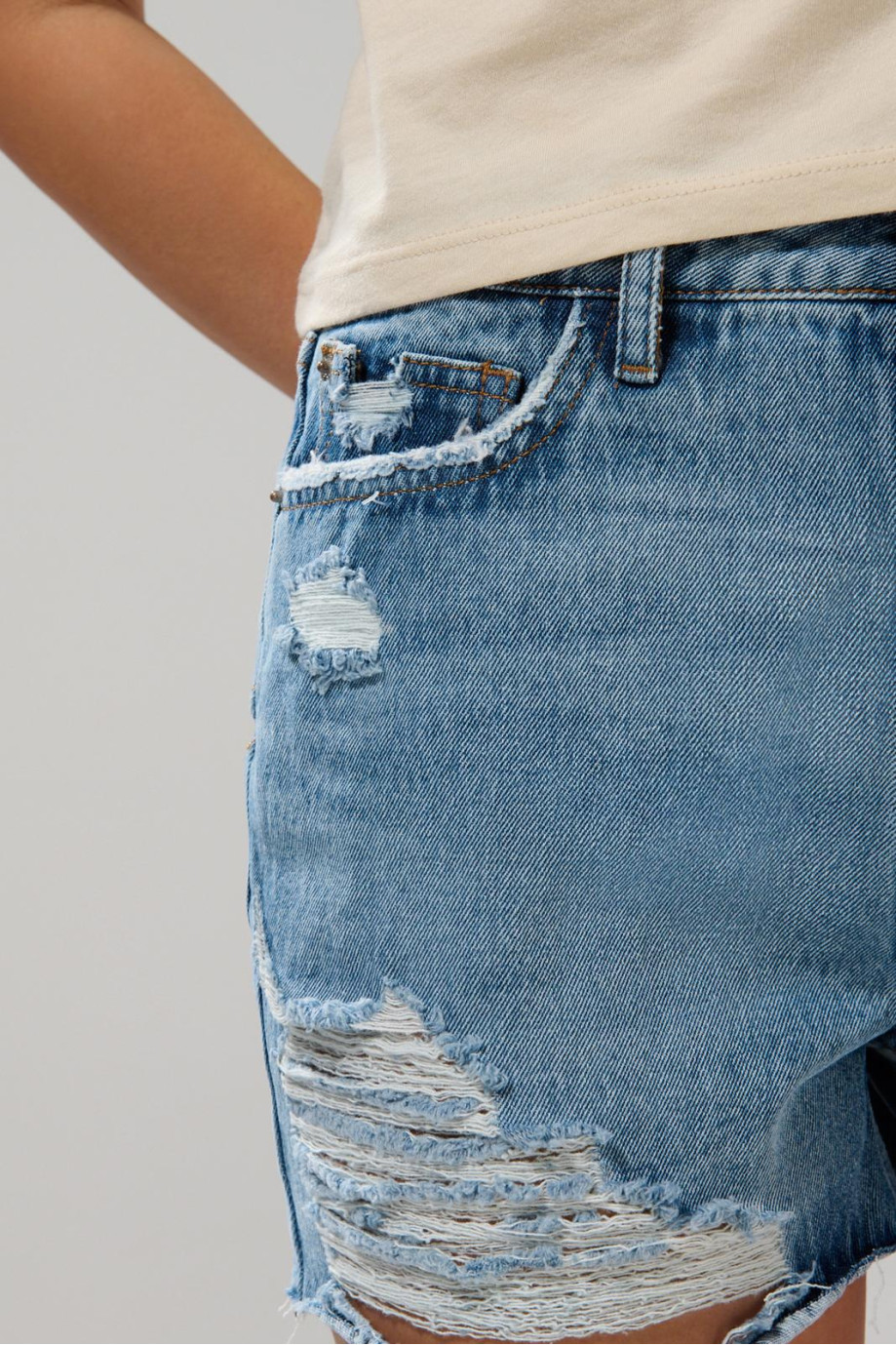 Short azul medio de jean para mujer cuenta con tiro alto, 5 bolsillos, rotos localizados en frente, pretina con botón metálico y un fit que se ajustará al cuerpo en la medida precisa. Esta prenda le dará un toque atractivo a tu estilo, lo que la convierte en la opción perfecta para lucir con camisetas sin mangas en cualquier ocasión.
