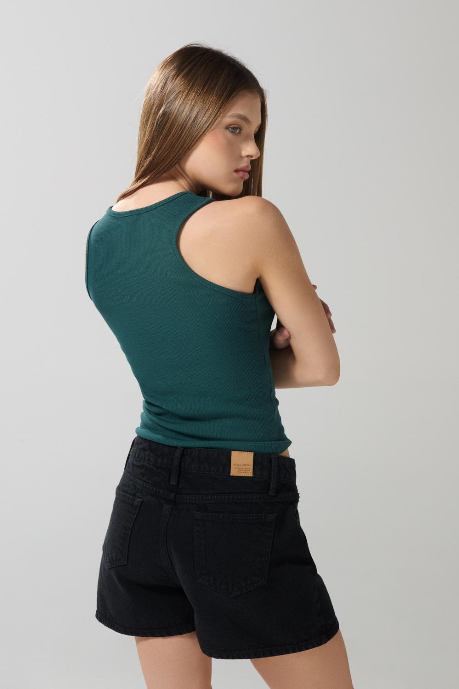 Camiseta verde oscura para mujer, confeccionada en tela suave con texturas de canal, cuenta con manga sisa, cuello redondo y una silueta ceñida al cuerpo. Dale a tu look un estilo fresco con esta prenda, combínala con tu mejor falda y lleva tu outfit a tus planes con amigas en el centro comercial.