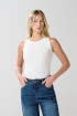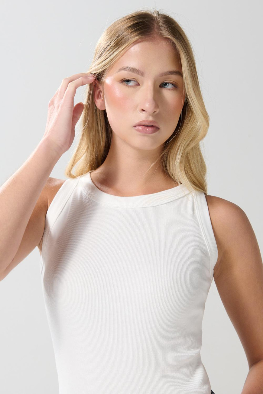 Camiseta para mujer en tono unicolor, confeccionada en tela acanalada, cuenta con cuello redondo, manga sisa y una silueta ajustada en el cuerpo. Lleva tu look al próximo nivel con esta prenda, combínala con tu short favorito y lúcela para disfrutar de los fines de semana más soleados.