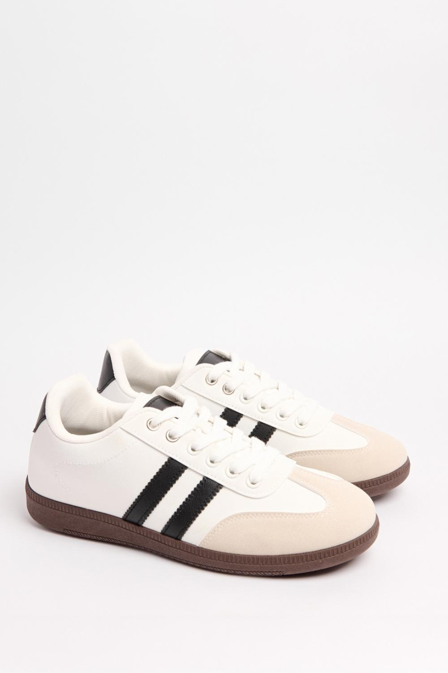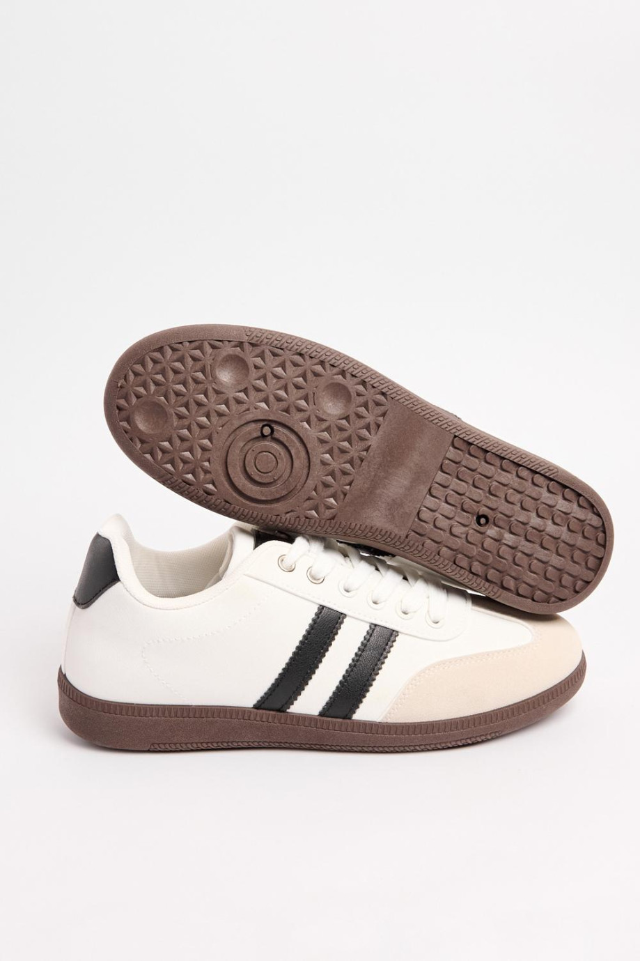 Tenis casuales blancos para mujer cuentan con cortes delanteros, contrastes negros laterales y posteriores, suelas planas y sistema de cierre con cordones. ¡Dales color a tus pies! Escoge tus favoritos para cualquier día de la semana y lleva la comodidad a todas partes.