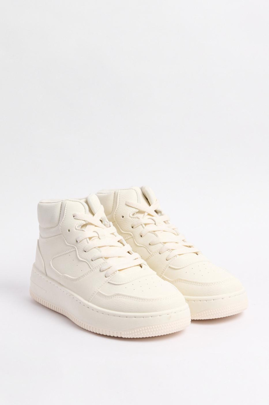 Tenis de bota casuales cremas claros para mujer cuentan con perforaciones en los costados, sistema de cierre con cordones y suelas planas con detalles en relieve. ¡Siéntete cómoda y con estilo al caminar! Lúcelos con tus jeans Koaj favoritos y dales un toque divertido a tus pies.