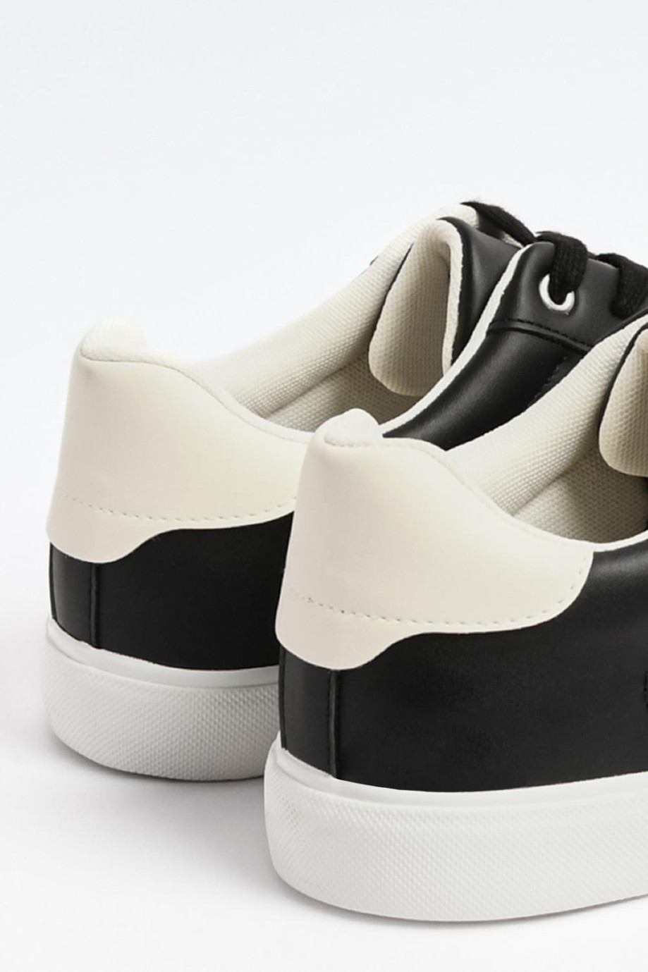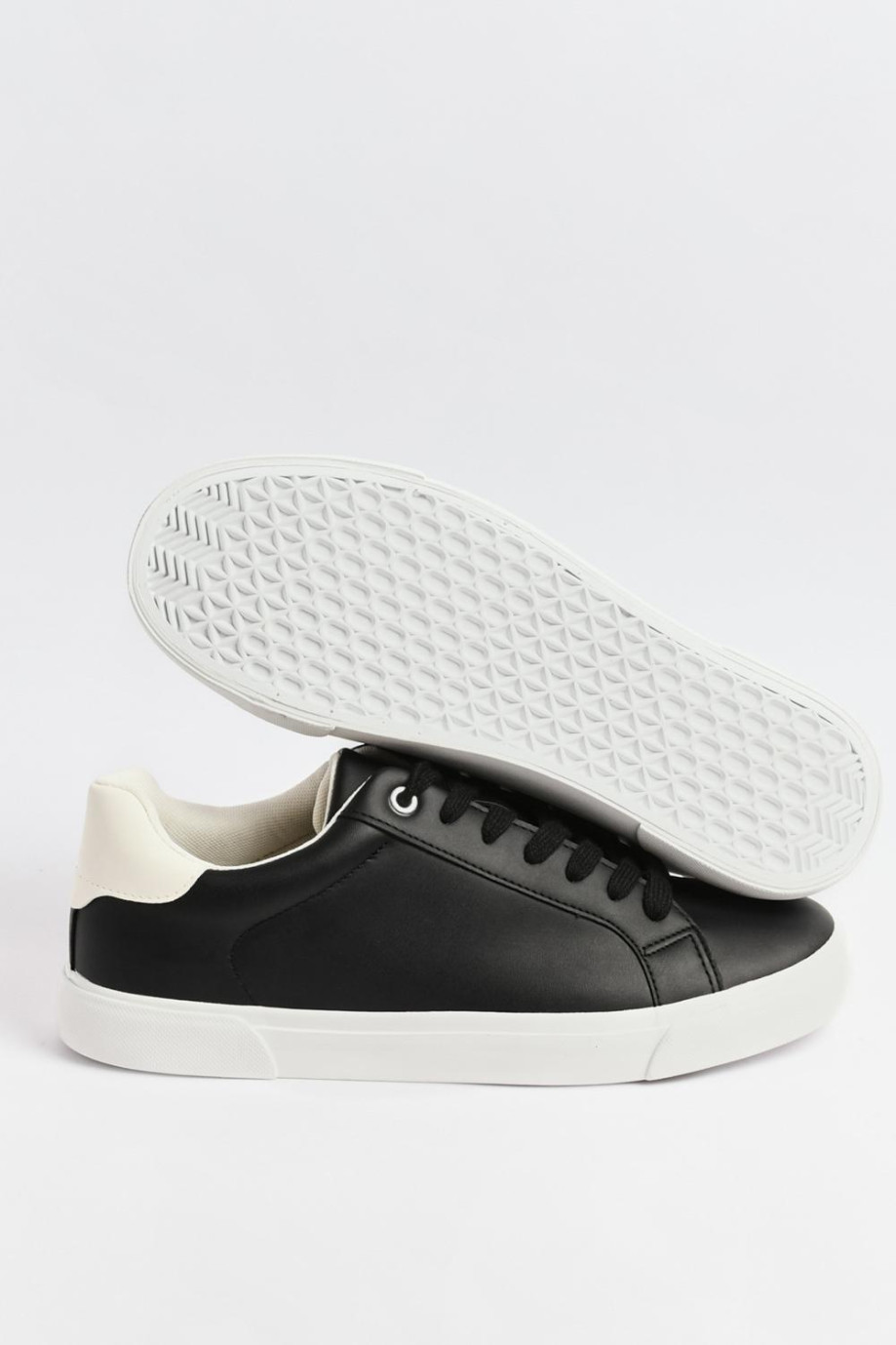 Tenis casuales negros para hombre cuentan con suelas planas, diseño con contraste posterior blanco, sistema de cierre con cordones y ojaletes metálicos. ¿Buscas estar en tendencia con tu look? ¡Con este calzado estarás un paso más cerca de lograrlo! Con un par de medias cortas caminarás con estilo.