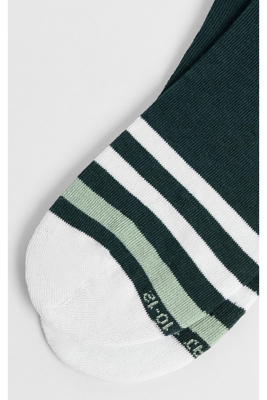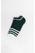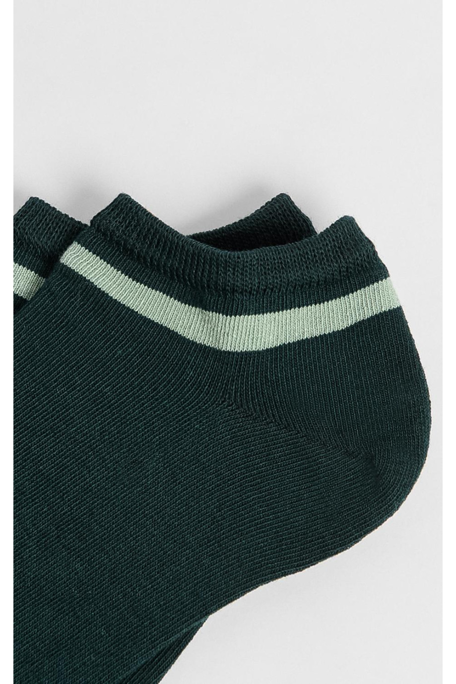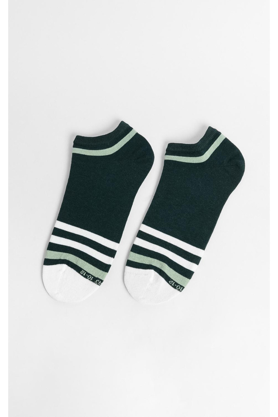 Medias tobilleras verdes oscuras para hombre, confeccionadas en suave tela de algodón, cuentan con diseños de rayas en contraste, elástico en el borde superior y finas texturas de canal. Esenciales para tus pies, podrás combinarlas con tus tenis preferidos y llevar la comodidad al caminar.