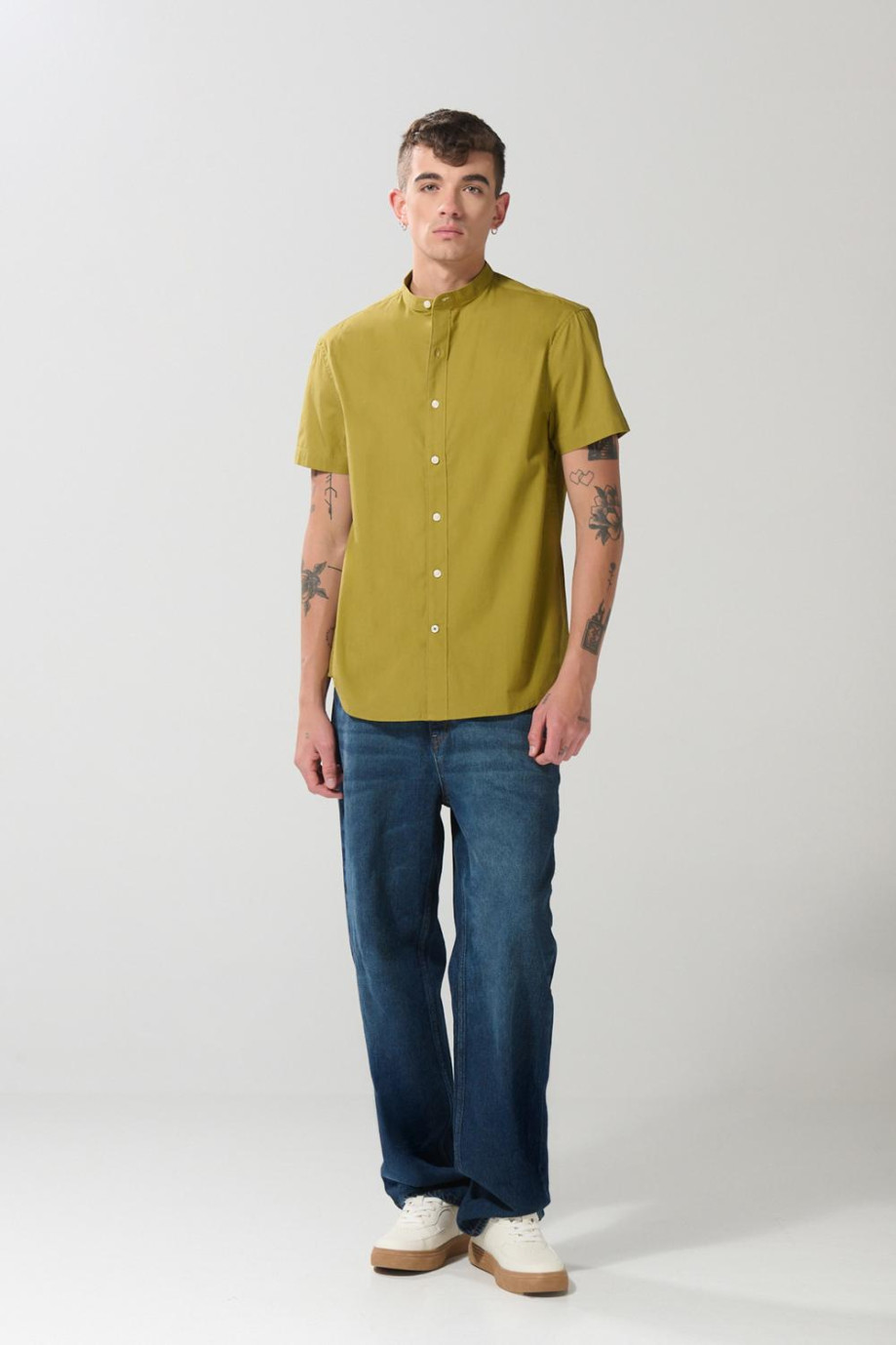 Camisa para hombre cuello nerú unicolor, elaborada en suave tela de algodón, cuenta con manga corta, cierre delantero con botones y un fit ligeramente ajustado al cuerpo. Combínala con un jean skinny y tus tenis más cómodos, así crearás un look ideal para disfrutar de tus salidas con amigos.
