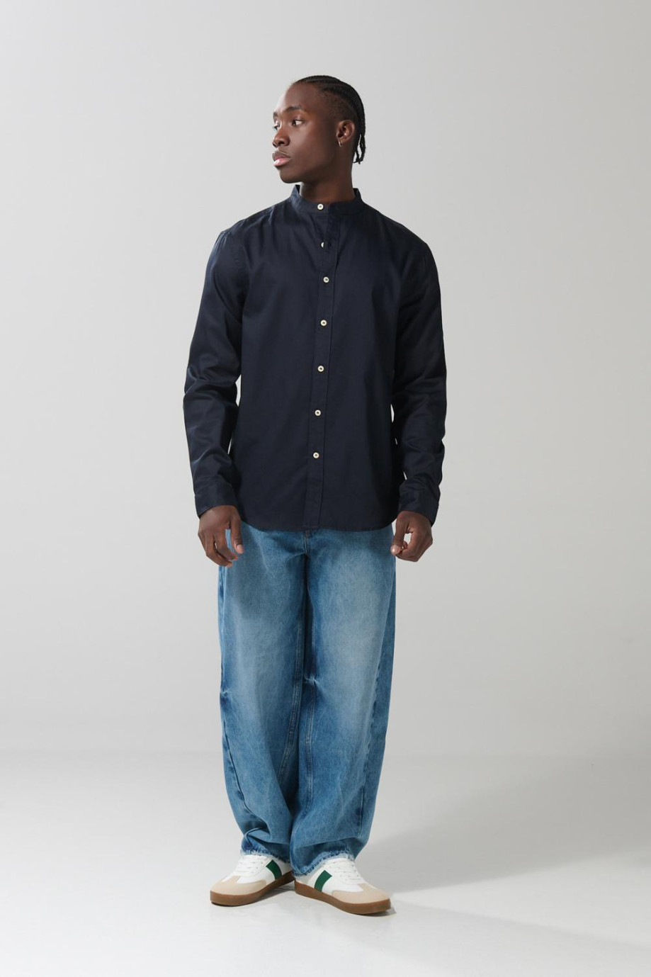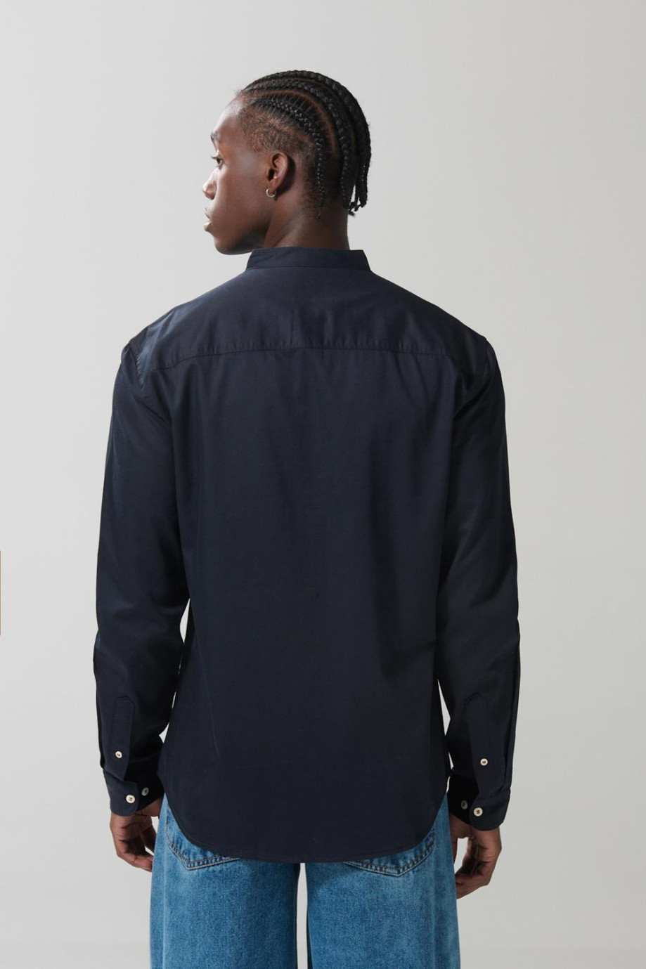 Camisa en algodón unicolor con botones y cuello nerú
