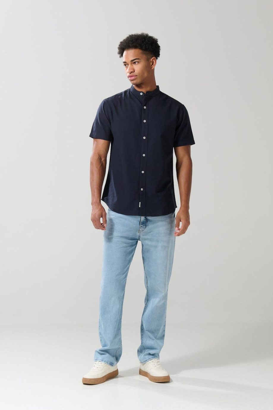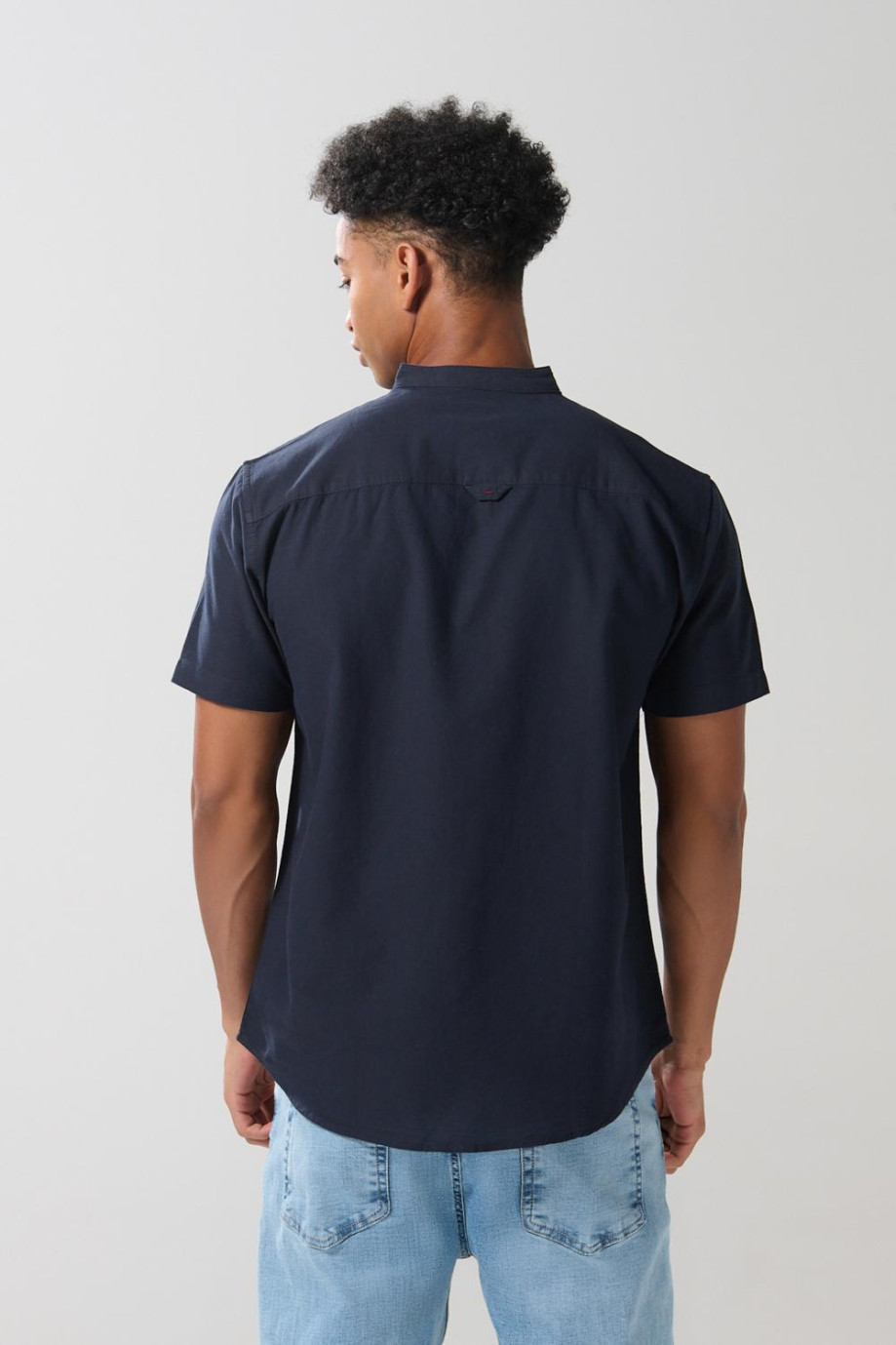 Camisa unicolor cuello nerú para hombre, confeccionada en tela 100% de algodón, cuenta con manga corta, cierre delantero con botones y una silueta ajustada en el cuerpo. Esta prenda es el complemento perfecto para que te destaques con tu look en todos tus planes causales. ¡Con un jean lucirás fantástico!